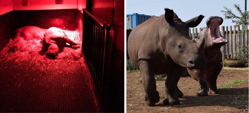 - Feeding and sleeping areas, complete with heating lamps to keep the baby rhinos warm during the cold winter months.